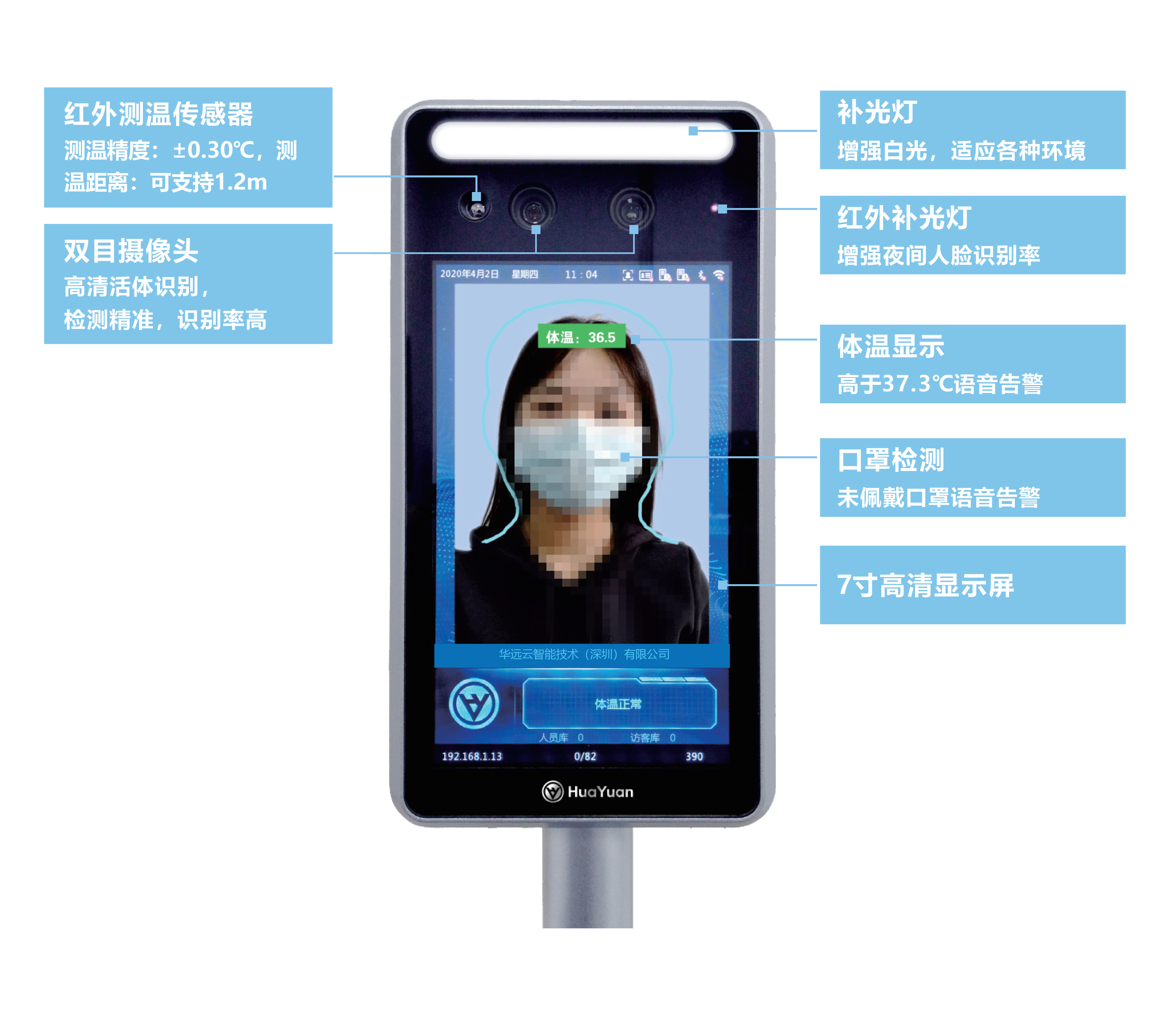 紅外額溫檢測人臉識別一體機(jī)人臉識別測溫終端集人臉識別、紅外測溫、戴口罩檢測功... -